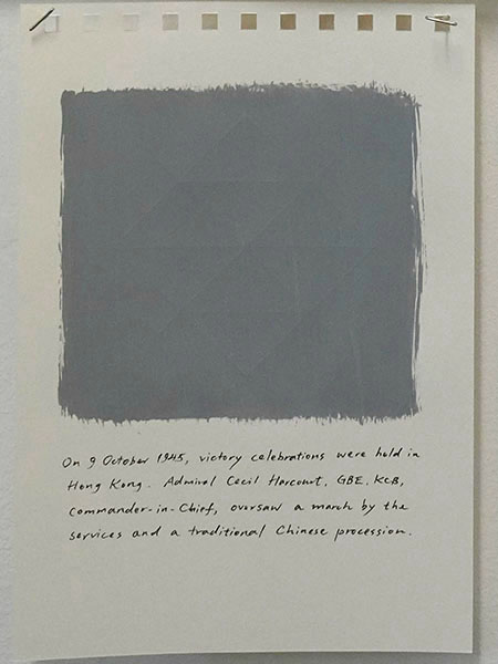 On 9 October 1945, victory celebrations were held in Hong Kong. Admiral Cecil Harcourt, GBE, KCB, Commander-in-Chief, oversaw a march by the services and a traditional Chinese procession.