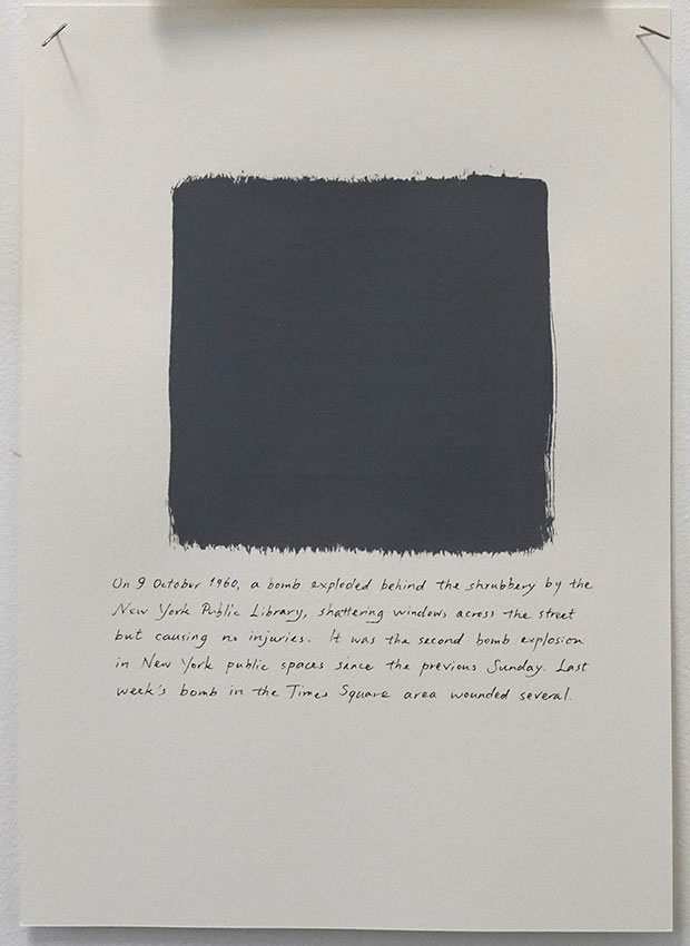 On 9 October 1960, a bomb exploded behind the shrubbery by the New York Public Library, shattering windows across the street but causing no injuries. It was the second bomb explosion in New York public spaces since the previous Sunday. Last week’s bomb in the Times Square area wounded several. |