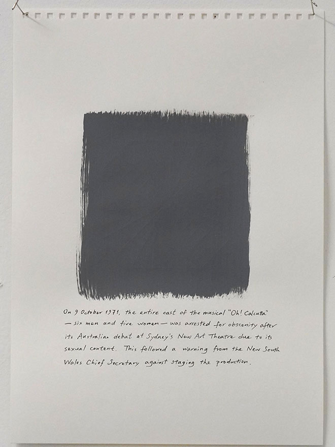 | On 9 October 1971, the entire cast of the musical Oh! Calcutta—six men and five women—was arrested for obscenity after its debut at Sydney's New Art Theatre due to its sexual content. This followed a warning from the New South Wales Chief Secretary against staging the production. | |