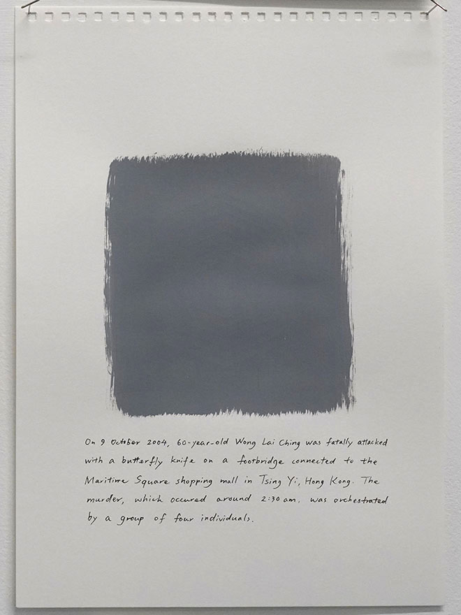 | On 9 October 2004, 60-year-old Wong Lai Ching was fatally attacked with a butterfly knife on a footbridge connected to the Maritime Square shopping mall in Tsing Yi, Hong Kong. The murder, which occurred around 2:30 am, was orchestrated by a group of four individuals. | |