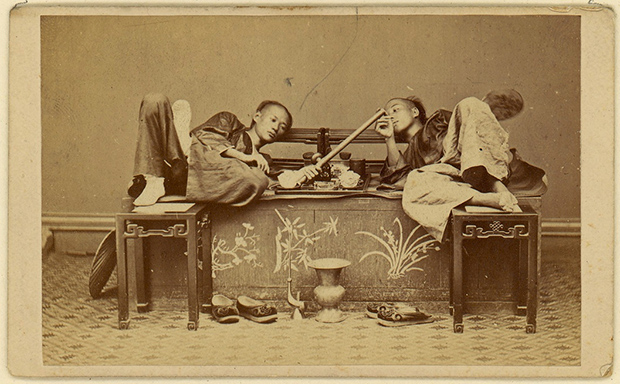 “[Opium Smokers], Pun Lun (Chinese). Date: 1870s. Medium: Albumen silver print. Classification: Photographs. Credit line: Gift of Weston J. Naef, 1985. Accession Number: 1985.1123.1.12”