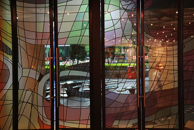 The first piece Untitled (Drawing from Memory but Not Exactly) was conceived out of the impressions from the interviews. Leung shared with the interviewees some of the memories of a handful of artists who have become the subject of this drawing work. Their presence in the façade of the Hong Kong Arts Centre has been an irony to the function of an art institution that has been striving to present art at present. The photos found in old catalogues of artists Josh Hon, Annie Chan, Comyn Mo and Tsang Wai Hang who were once active in Hong Kong in the 1980s and 90s were the reference for this drawing.