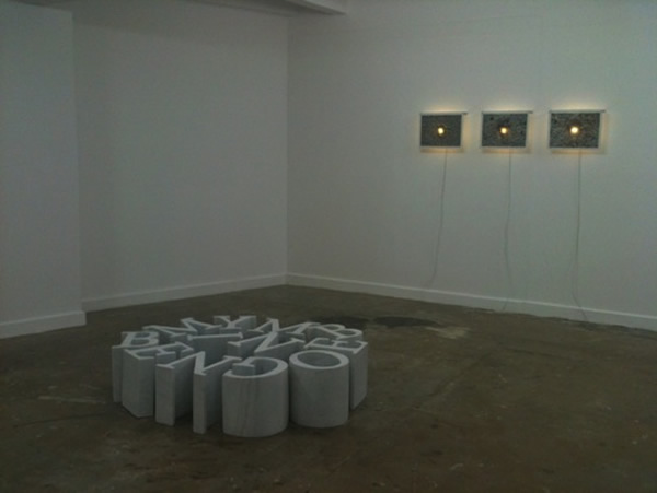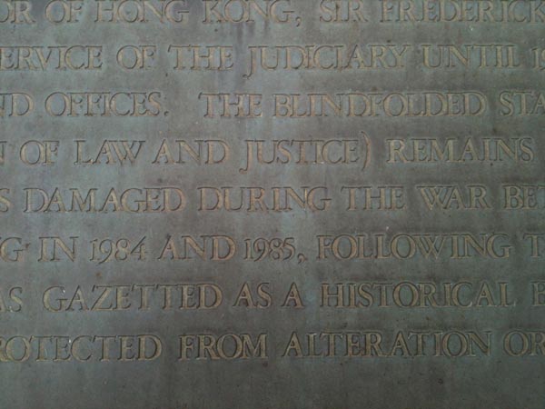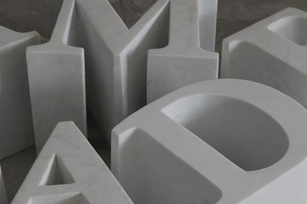 DAMAGED. Marble, dimension variable (each letter approx. 30x30x30cm; installation approx. 140x90x30cm) DAMAGED is quoted from the commemorative inscription in front of the Old Supreme Court (also Old Legislative Council Building today) which contains this line: “The stonework on the rear façade was damaged during the war between 1941 and 1945.” Only time but not reasons and comments for its damage have been mentioned.