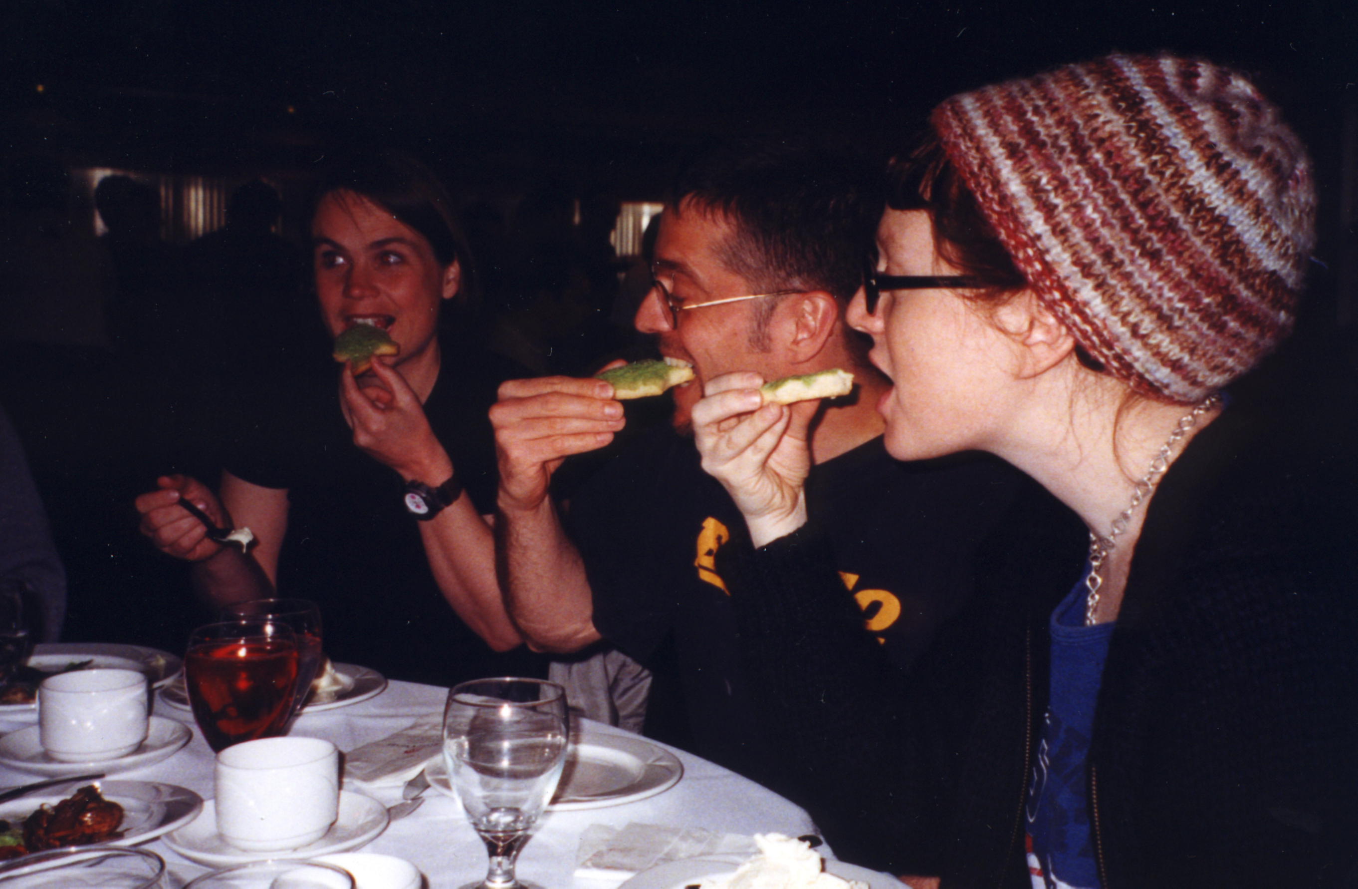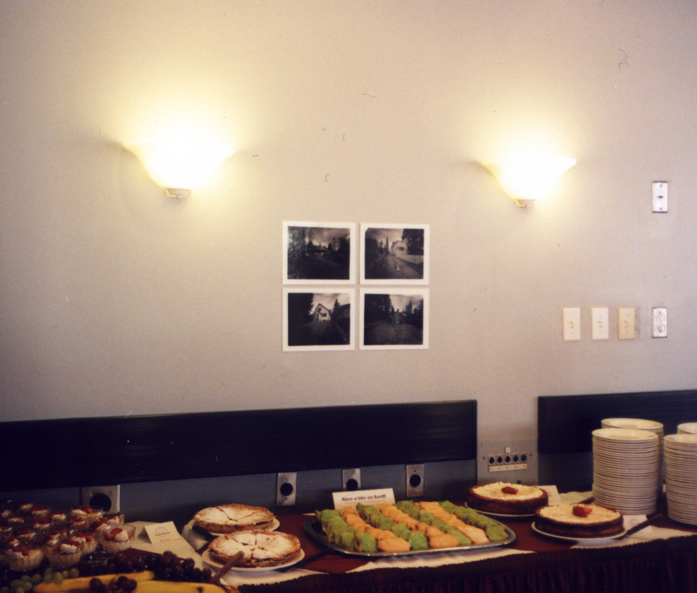 Have a bite on Banff! The City Cookie as a special dessert for the buffet dinner at the Banff Center was delivered on May 2, 2000. A video of diners taking cookies from the dessert table was made. |