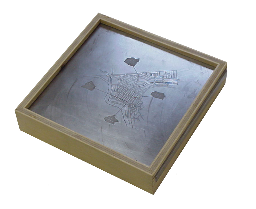 Gifts from Banff, wood, stainless steel, 25 x 25 x 5.5 cm |