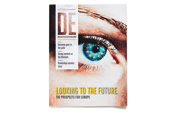 | 《DE Magazin Deutschland》(DE 德國 雜誌),第 2 期,2013 年夏季,27.5 x 21 厘米。 第 50 及 51 頁的主圖轉載自《紐約時報》,攝於 馬賽港的 Robert Laffont 海濱長廊,背景是馬 賽主教座堂。圖中穿灰色班點圖案大衣的女士, 正透過玻璃外牆窺看新的「歐洲及地中海文化博 物館」內裏的情況。她也許是個來自巴黎的記者, 在想這即將開幕、首座巴黎市外的國立博物館, 真的可以洗脫馬賽長期以來暴力、販毒和黑幫城 市之形象嗎? |