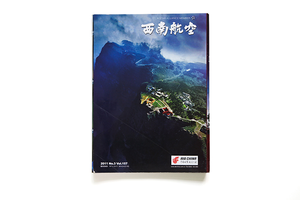 | EAGLE, inflight magazine of Southwestern, Chongqing, Guizhou & Tibet Branches of Air China, no.3, volume 157, 2011, 28.5 x 21 cm. In page 40 is the photo of a cable boat in Chadong. It is a travel story about this small riverside town in Southwestern China, which inspired the famous novel Border Town by Shen Congwen in 1934. The boatman is described as 50 something in the article, much younger than the character in the novel who is in his seventies. He might be younger than 50 as hardship has aged his appearance. The popularity of the novel has brought tons of tourists to this little town. His feeling is far more complicated than the fictional character and he has been frustrated with the loss of his quiet life. The town was even officially renamed as The Border Town and attracted lots of tourists. At this moment, the boatman might be staring at the tourists who are perhaps requested by the photographer to stay away from the camera. |