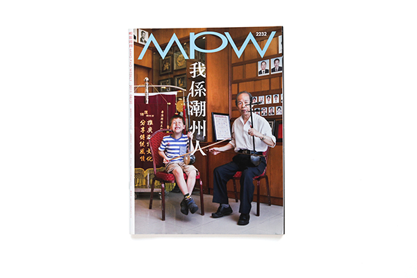 | 《明報周刊》,第 2232 期,2011 年 8 月 20 日,27.7 x 20.8 厘米。 第 41 頁上面的照片可見香港長沙灣地區潮州社 團籌辦的盂蘭勝會,攝於 1979 年。相中一群男 子合力豎起紙紮的寶塔,中間的一位是社團的活 躍成員。潮州人是出名團結的,他為表重視,特 別穿上得體的白襯衣、西褲、皮鞋,還有簇新的 腕表。只是他可能太習慣在炎熱的夏天把褲管卷 起,節慶開始時其中一邊一時間忘了放下來。 |