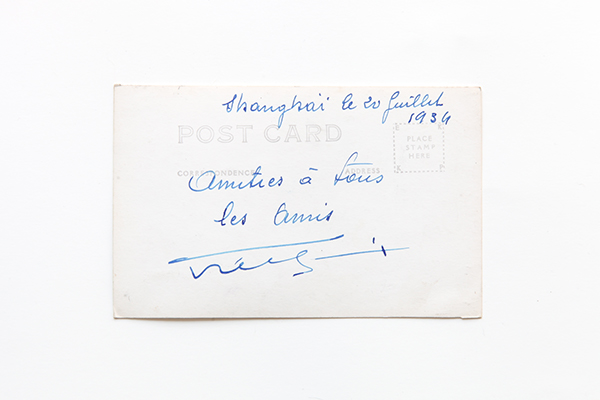 | Shanghai Wai Fon Bank (Hong Kong & Shanghai Banking Corporation), gelatin silver print postcard, 1930s, 8.3 x 13.1 cm. Photographed on one summer day in the 1930s, it shows people walking along the Bund of Shanghai with the palatial building of the former headquarters of HSBC (currently the premises of the Shanghai Pudong Development Bank) as the backdrop. Respectably dressed, the man who wears a long gown and a panama hat in the left foreground walks with pride. Born at the turn of the century in a traditional family, he has received tons of impacts of western culture. Now it is the peak of the development of modern China in his lifetime and he is working his way in this “paradise of adventurers”. He has particularly chosen to walk on the other side of the road to enjoy the view of prosperity. |