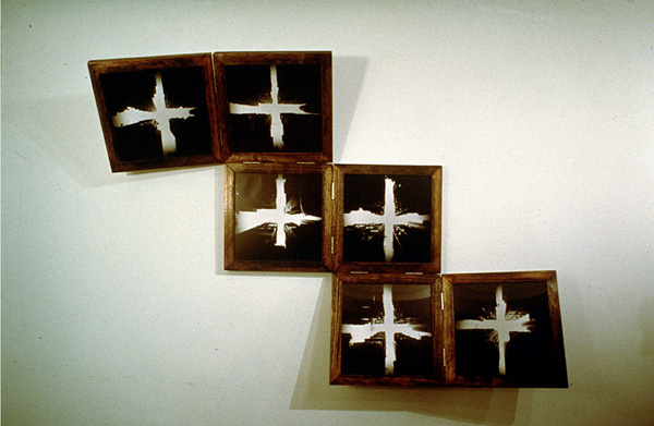 | Wood, plexi-glass, b/w photos, iron hinges, 4.5 x 193 x 144.8cm, 1997 |